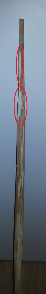 Tja liebe Leute. Ich bin raus. Gestern ist mir der Bogen zweimal beim Tillern gebrochen. Jeweils sauber entlang des Drehwuchses. Nach dem ersten Bruch dachte ich mir ja noch "Ok. Machst du halt einen kurzen Bogen mit "nur" 130cm", aber davon waren dann nach dem zweiten Bruch nur noch ca. 70cm übrig. ...