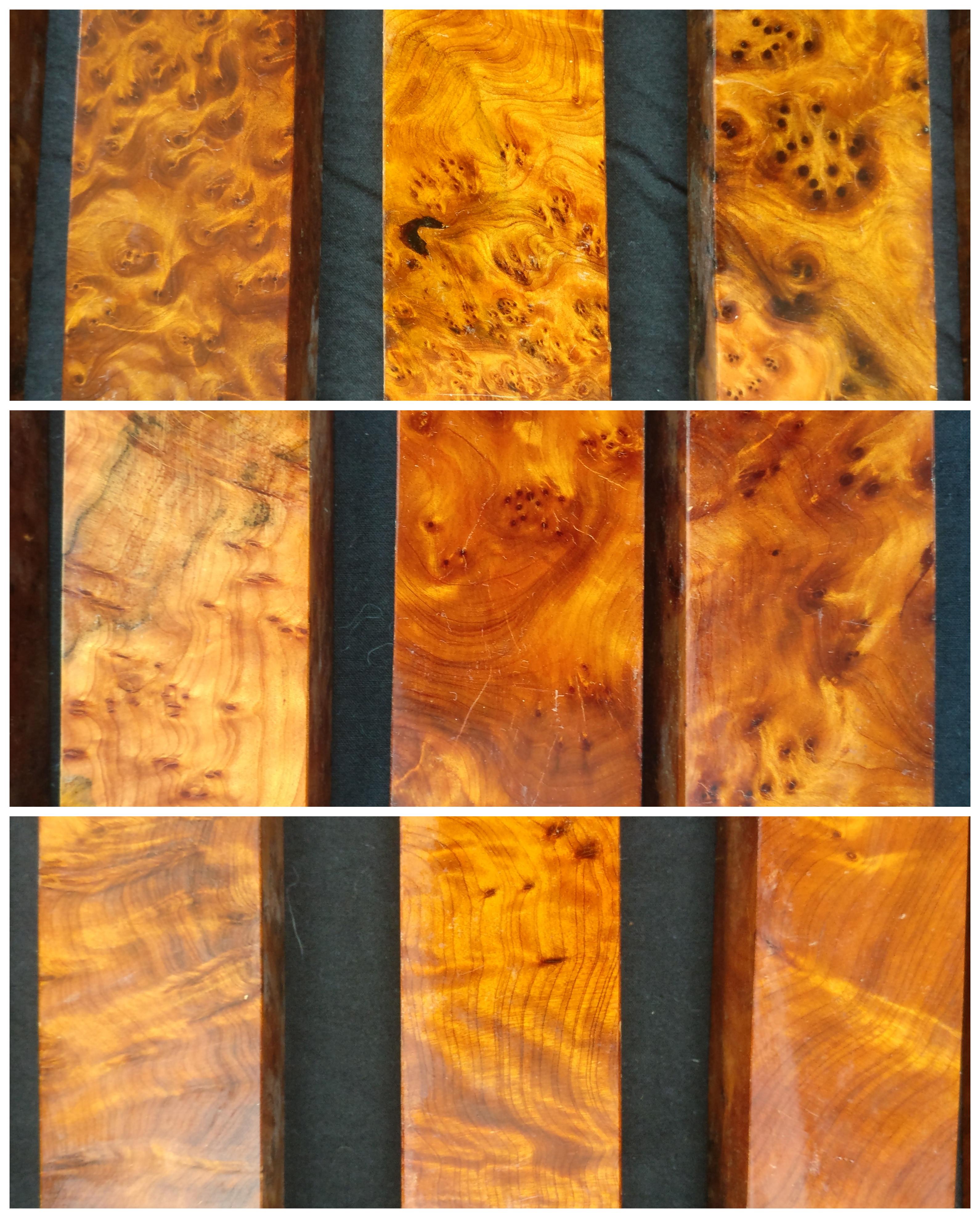 Sind alle sehr schön, bei C sind halt teilweise keine oder weniger Astwirbel aber dafür schillernde Maserung und Verwirbelungen..