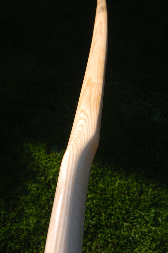 Dieser Bogen ist eine Hälfte eines Eschestaves den ich letztes Jahr erworben habe. Das gute Stück war zu schmal für zwei vernünftige Flachbögen, aber auch zu breit für nur einen Bogen. Also hab ich den Stave mit einer Handkreissäge in zwei Hälften geteilt und einen Flachbogen und diesen Stabbogen geb ...