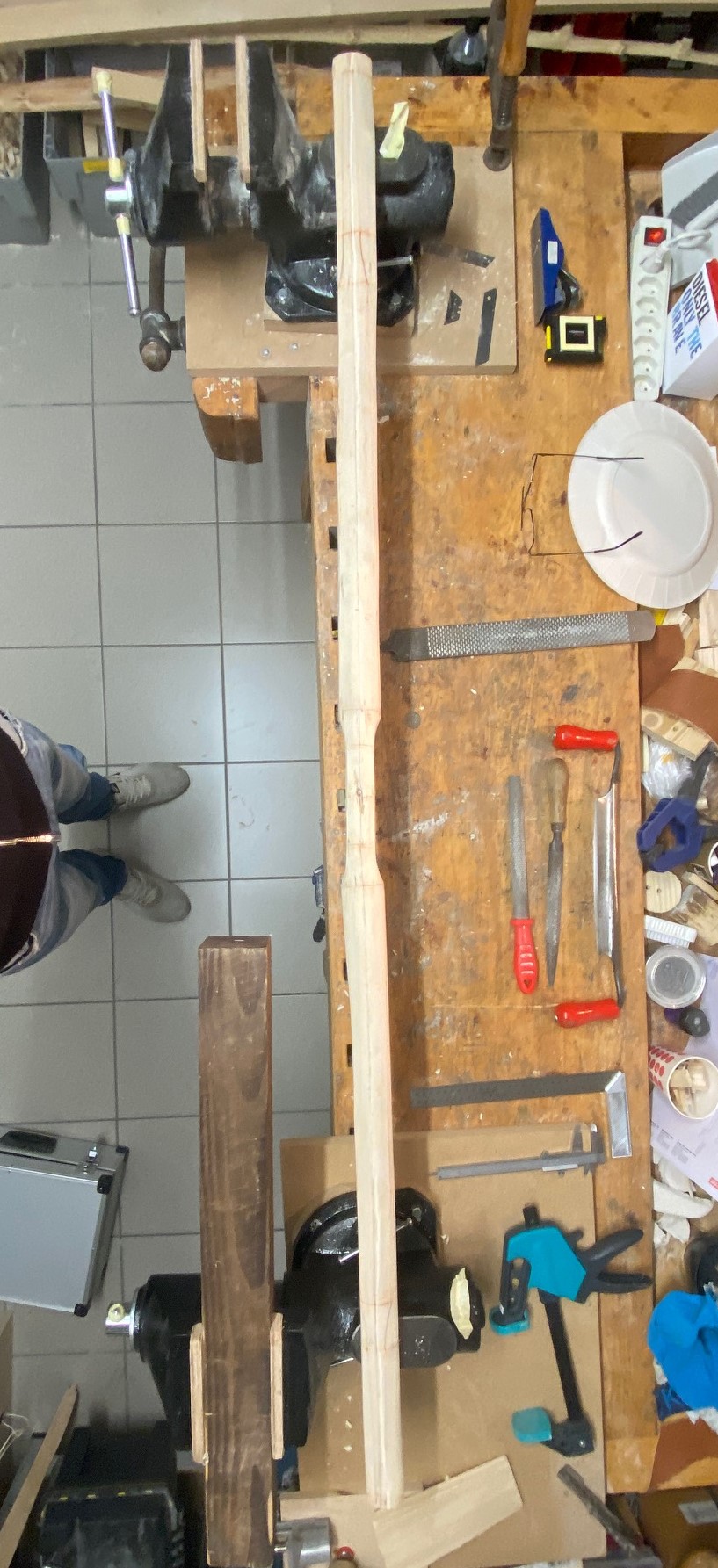 Habe das Griff-Holz 25 Min aufgeheizt (von allen 3 Seiten) und nun eingespannt am Abkühlen