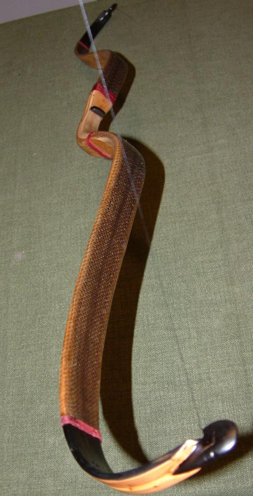 Ein Skythenbogen aus Holz mit Sehnenbacking, der dem Subeixibogen in Länge und Form authentisch nachgebildet wurde. Der innere Aufbau ist nicht unbedingt authentisch, da es noch keine genauen Daten vom Subeixi gibt.