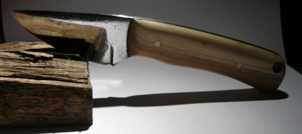 nun - die löcher und die nieten oder schrauben (muss ich schauen was das baugeschäft so hat) sind auch eine optische frage. die klinge schaut einfach mächtig aus - da würd sich was mit nieten sicher gut machen.