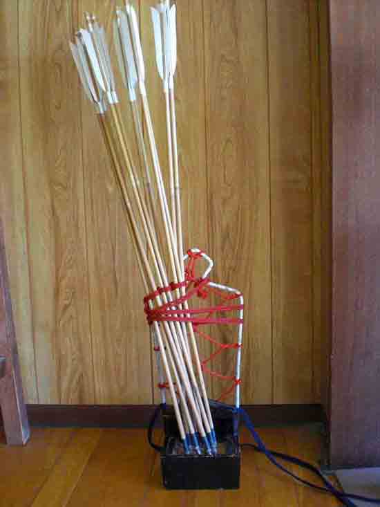 Materialien weiß ich leider überhaupt nicht was zu machen is... unten eine Holzkiste, mit den stäbchen wo die Pfeile Stecken... Der Bügel ist aus Bambus, nehme ich an... (Die machen ja eh alles aus Bambus