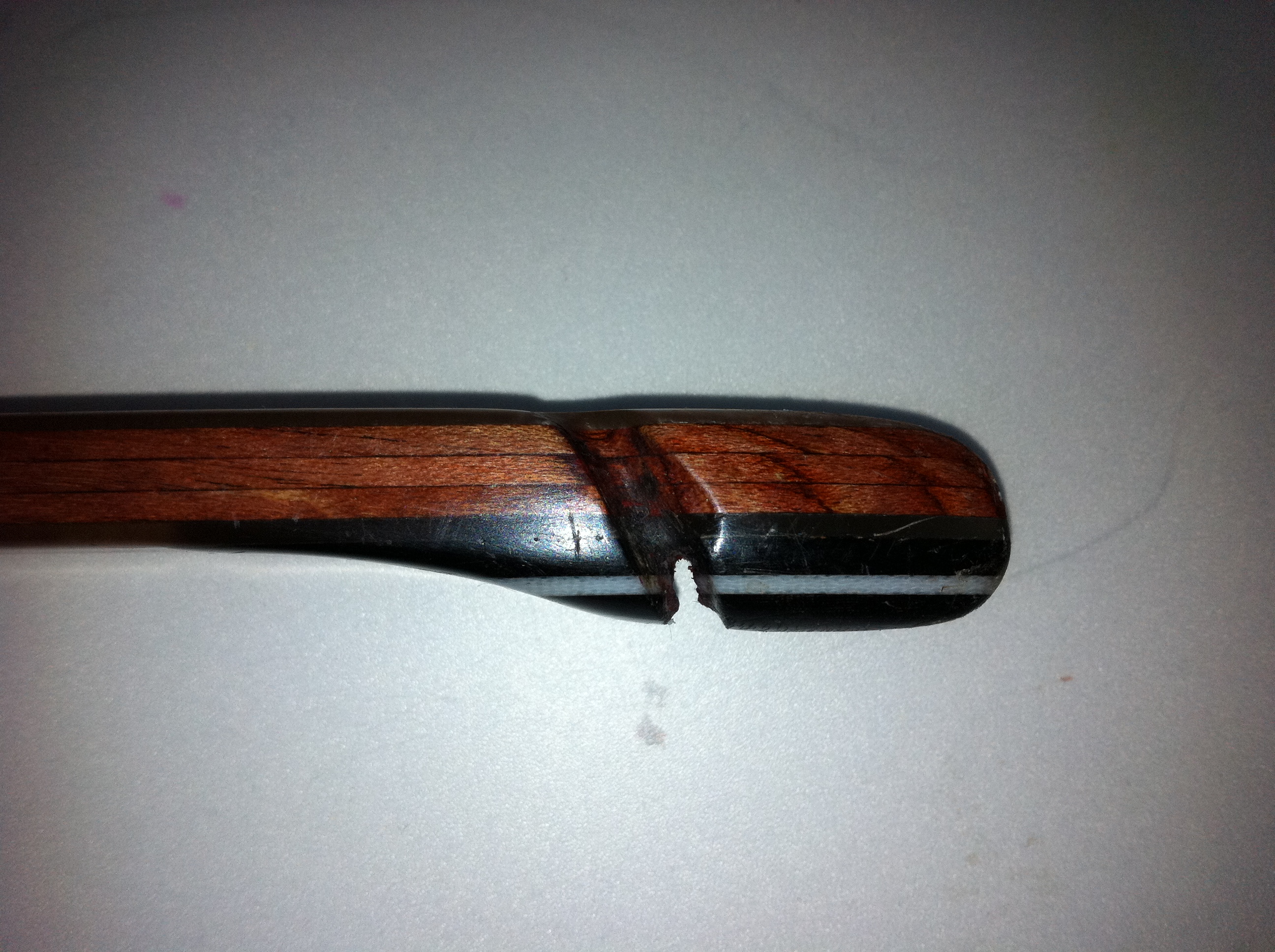 habe meinen Bogen seit längerer Zeit wieder "ausgegraben" und wieder ein paar Schüsse getätigt als mir beim Entspannen aufgefallen ist, dass die Sehne auf einer Seite sich nicht leicht aus der Bogennocke (ich bin mir nicht sicher was die offizielle Bezeichnung ist) herausging und bemerkte dann, dass ein Stück Kunststoff fehlte und sich die Sehne somit in die Nocke klemmte. Bin mir natürlich sicher, dass das weder für den Bogen noch für die Sehne gesund ist. Nicht sicher bin ich mir wie das zustande kommen konnte (entweder altersbedingt, falsche Handhabung...).