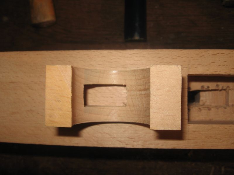 Die Seitenwände vom Nussbrunnen dürften kein Problem sein, da man sich einfach nach unten vorarbeitet. Aber mir ist noch nicht klar, wie ich mit dem Stechbeitel unten im Nussbrunnen eine plane Fläche bekomme. Gibt es dafür extra abgeknickte Stechbeitel?