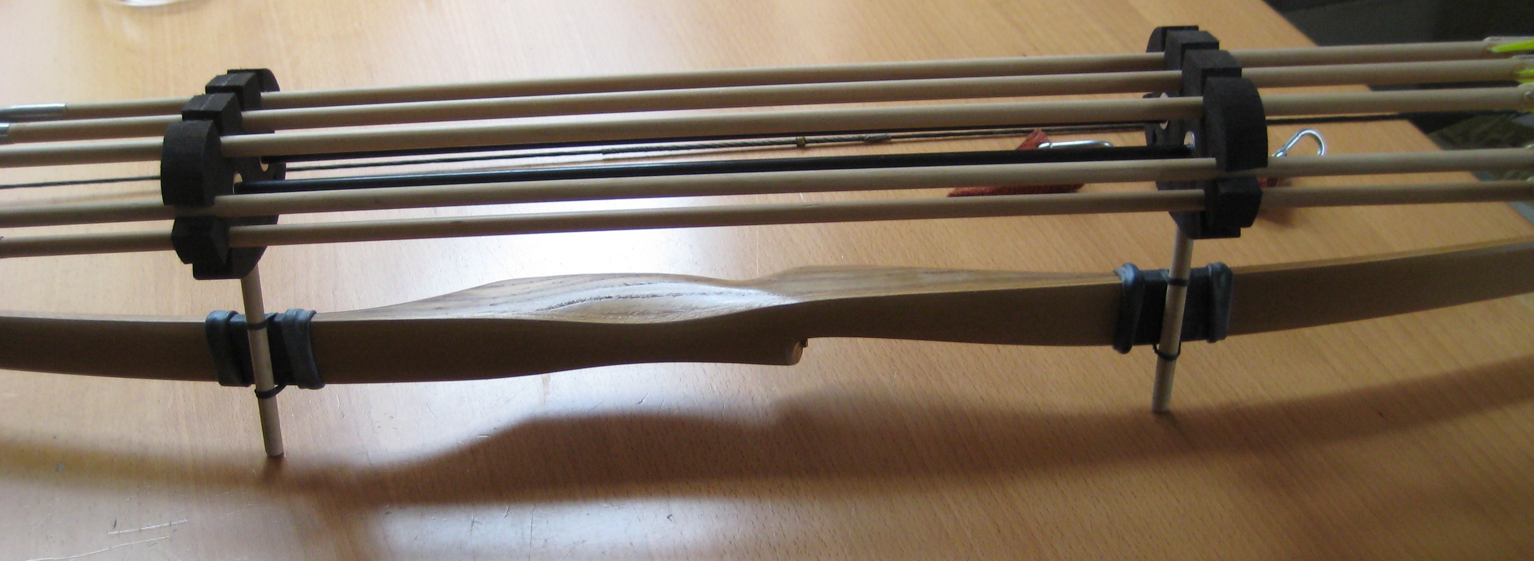 die "Klemmlösung" finde ich ja total interessant - kannst du da bitte noch ein Bild posten wie das dann am Bogen festgemacht wird und insgesamt aussieht ?