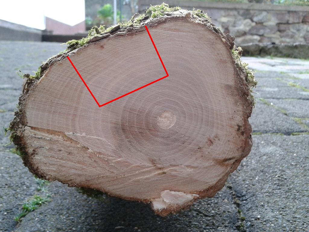Der ~9 cm dicke, gerade Stamm wurde im Dezember dieses Jahres gefällt. Möglicherweise hätte ihm eine längere Trocknungszeit gut getan.