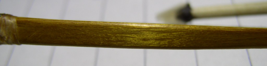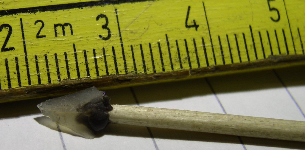 Ich hab ihn ja verschenkt, und so ein klein wenig vermisse ich den Bogen schon, war ein echt lustiges Kaliber und die kleinen Pfeile flogen wie geölte Blitze. Wenn ich mich an die Osage ranwage die hier noch so rumsteht, dann werde ich aus den Reststücken sicherlich wieder den ein oder anderen Mäusebogen basteln