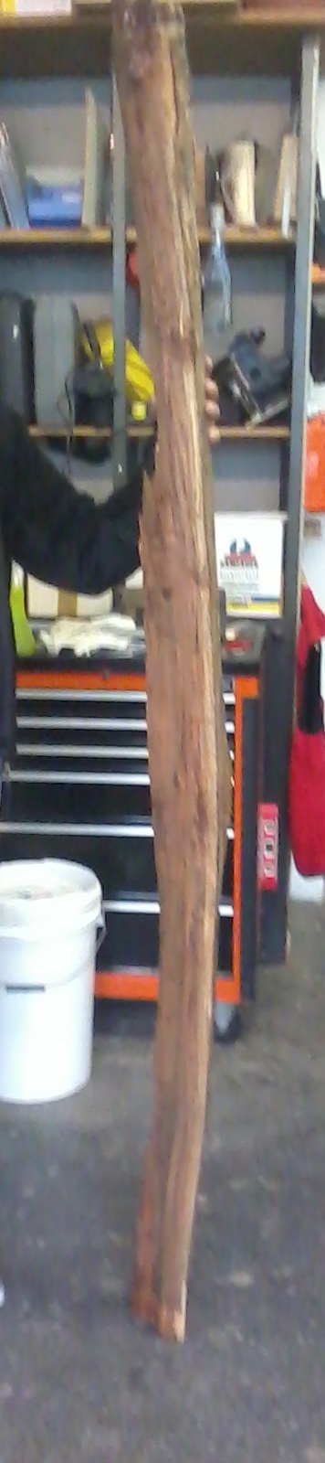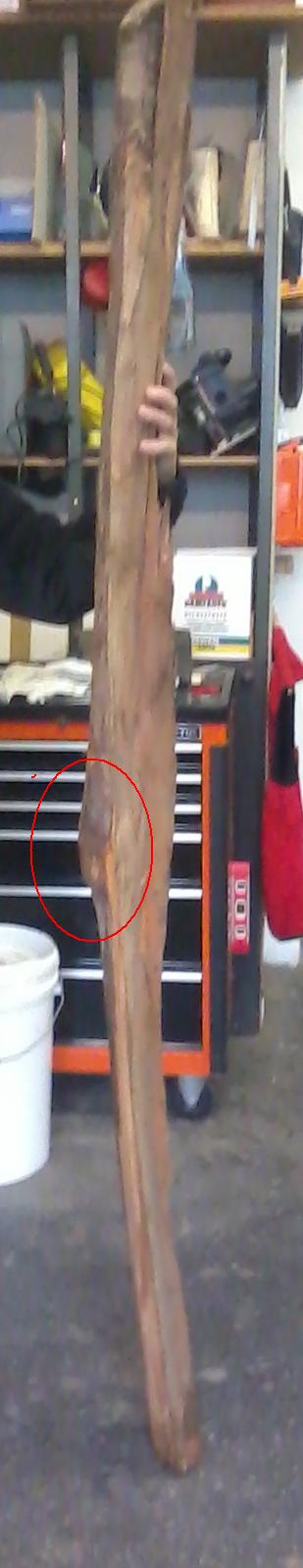 Der dicke Knubbel ist hmm irgendwie unschön. Da sitzt ein Ast drunter, wie chirion schon richtig gesagt hat. Ich bin da ein wenig skeptisch ob es sinnvoll ist den Stave nochmal zu teilen. Da würde man dann genau mittig durch den Knubbel (und damit den Ast) Sägen. Dann kann es sein das dir bei beiden Hälften nicht mehr genug Breite bleibt. Er kann aber auch so dick sein, das man da irgendwie gar nicht richtig nen Bogen raus bekommt. bin gespannt was Blacky dazu sagt.