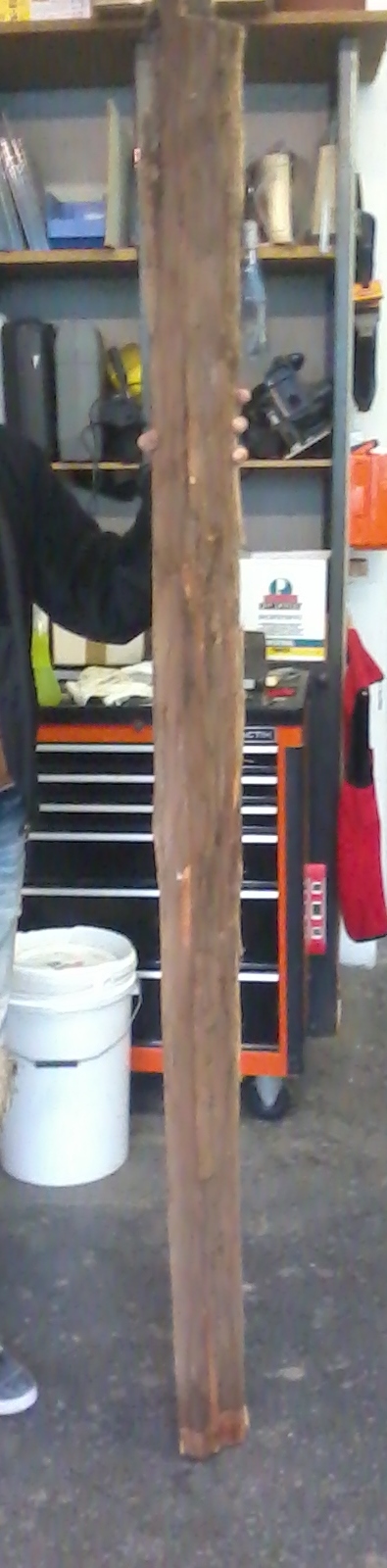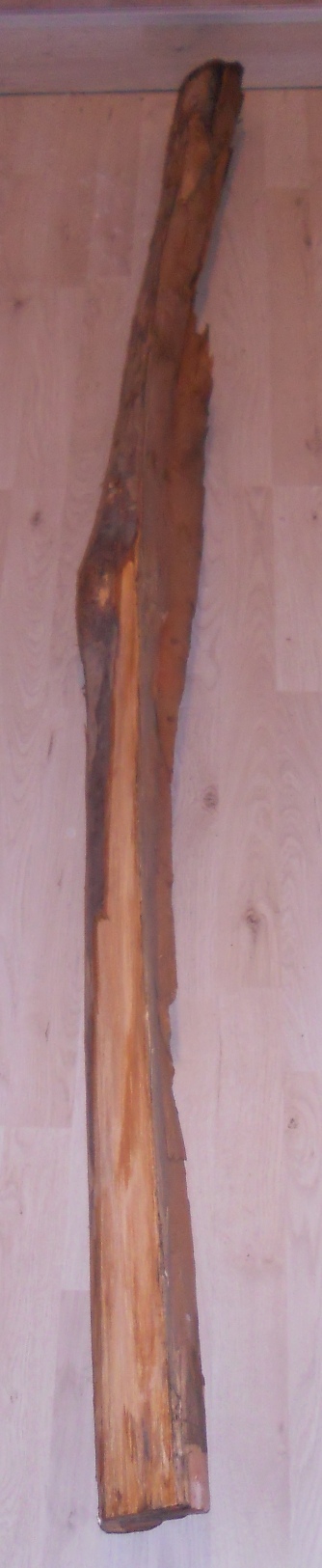Der 1/4 Stamm ist ca. 6 Jahre alt und lag wohl die meiste Zeit in einem Holzlager einer Tischlerei.