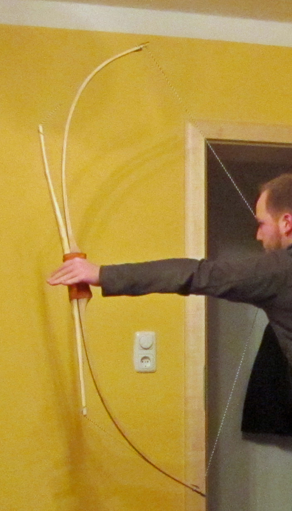 Der erste Fehler war, dass ich den Bogen mit einer Länge von 66'' fürs erste etw. zu kurz bemessen habe, die unterschiedlich langen Wurfarme zu Tillern war die nächste Herausforderung.