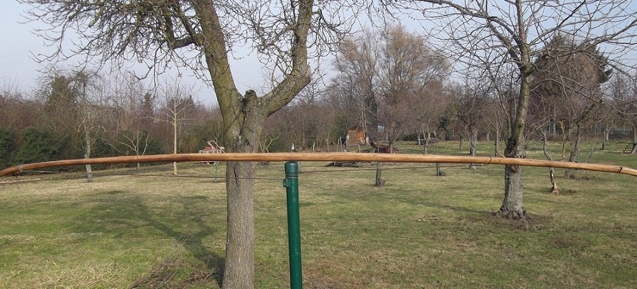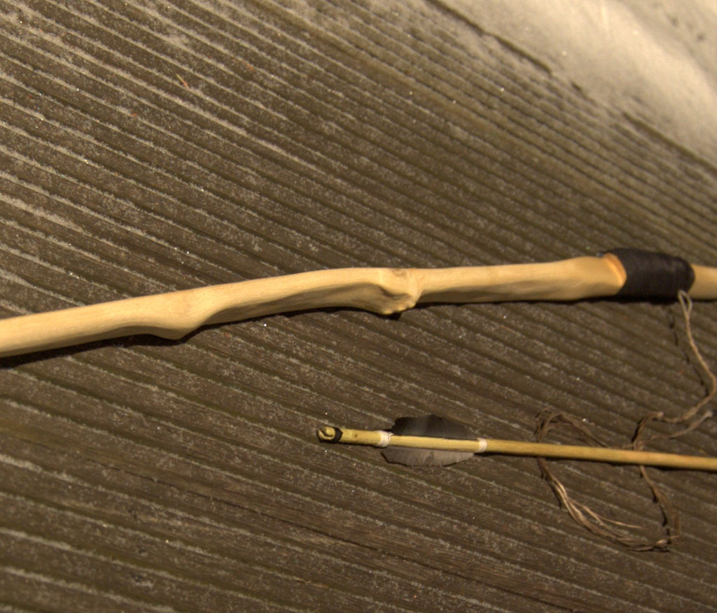 Es wurden zwei ziemlich gerade Äste für den Bogenbau ausgewählt. Die Sehne fluchtet gut über den ganzen Bogen