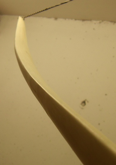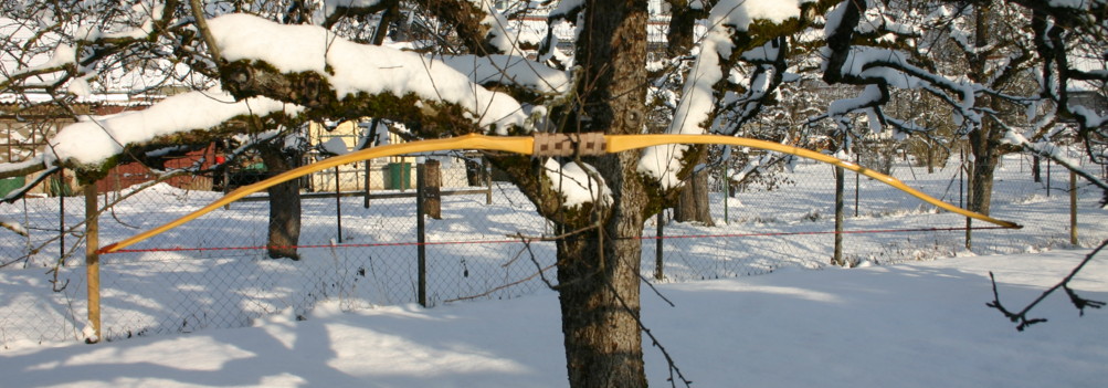 Abb. 1: Der Bogen wurde deflex im Griff verleimt, alle Krümmungen sind original gewachsen, es wurde nicht mit Hitze gebogen