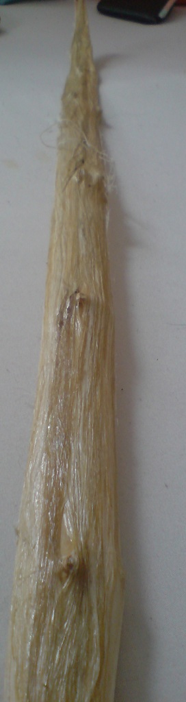 Griff: V-Spleiß 15 cm, Wicklung aus Rattan (Gelb) und Schnur (schwarz)
