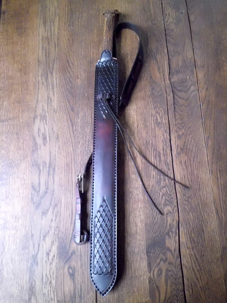 Also wenn man mal bedenkt dass ein Rückenköcher für Pfeile wesentlich größer, sperriger und schwerer ist als die Scheide für den Pfeilsucher, und ein Rückenköcherschütze auch meist noch eine Gürteltasche dabei hat, fährt man mit meiner Version (kleiner Seitenköcher und Pfeilsucher in Rückenscheide) bestimmt genau so gut wenn nicht angenehmer- selbst wenn man auch noch eine Gürteltasche dranhängt.