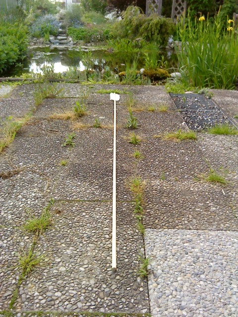 - 2,4m lange, 1,5cm dicke und gerade Kiefernstange aus dem Baumarkt