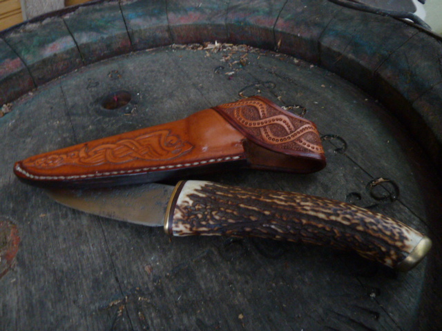 diesmal habe ich ein neues Zuhause aus Leder für ein Messer gemacht.