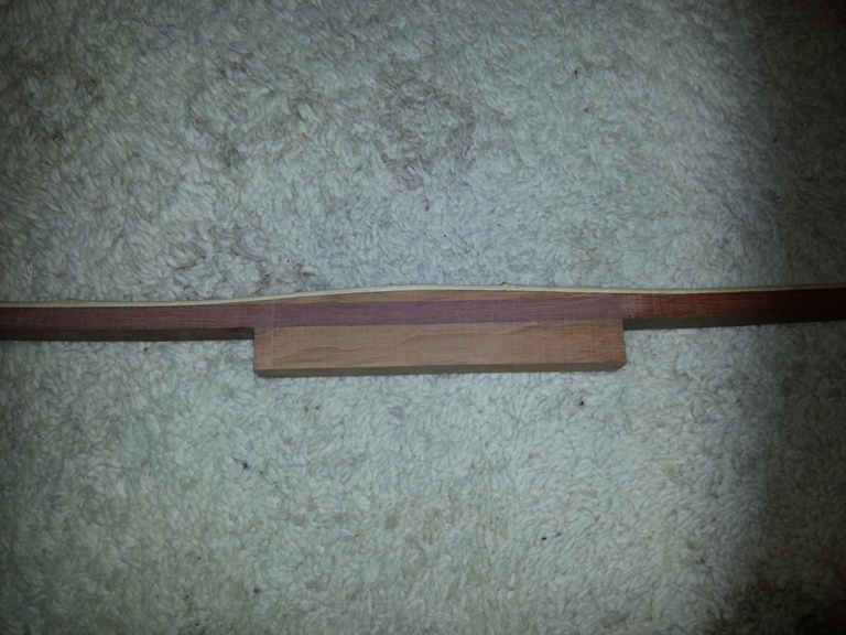 Ich tippe mal 3 - 4 mm müssen runter. Bei jedem Vollholzbogen muss man MEHR wegnehmen, ehe er sich biegt!