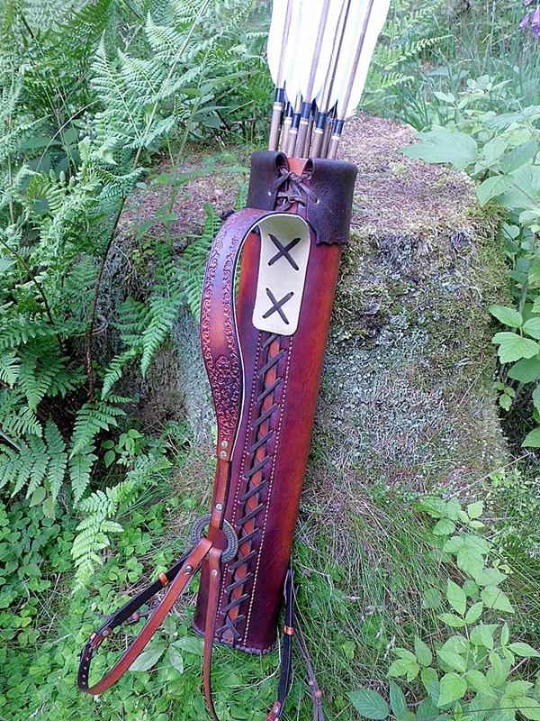 Dieses auf Maß gefertigte Unikat hat einen doppelt gelegten Boden um das Durchstoßen von Pfeilspitzen zu vermeiden und die Langlebigkeit zu gewährleisten.