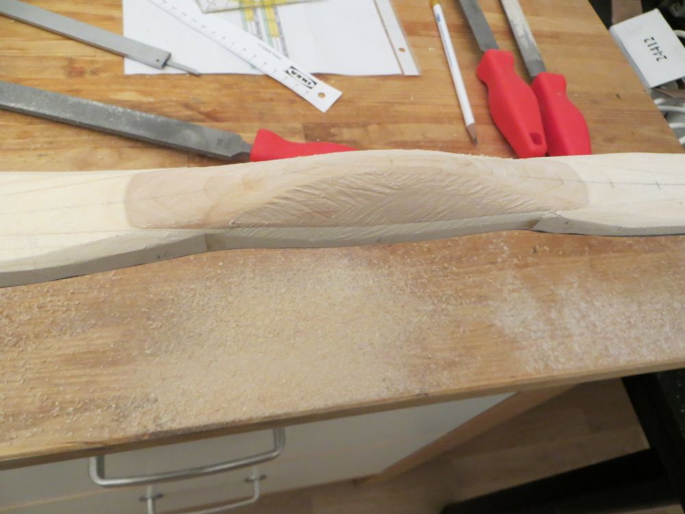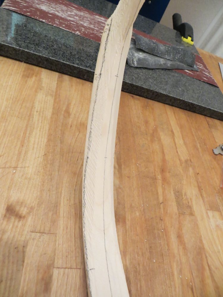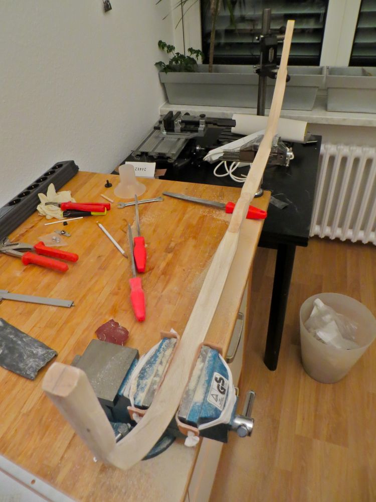 In den letzten zwei Tagen habe ich den Holzkern so weit geformt, dass als nächster Schritt der Sehnenbelag folgen kann.