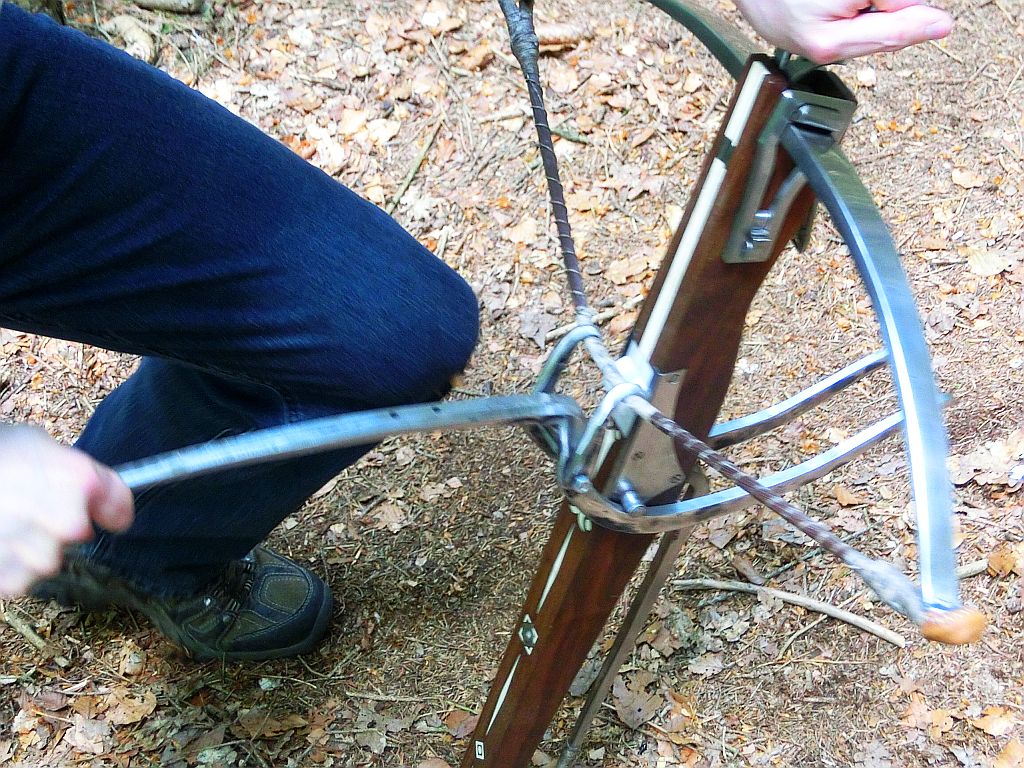 Ausgelegt für meine mit Knochen belegte Armbrust (ohne Stegreif) für ~100Kg und mehr als 25cm Spannweg.