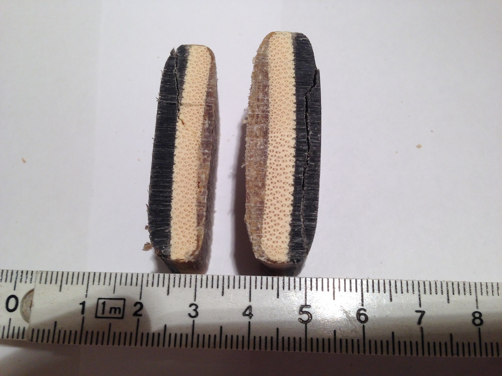 keine ahnung, aber sehe ich recht das das 2 Hornleisten waren die in bild 2 unter dem holz zu sehen sind? mit mittiger klebestelle?