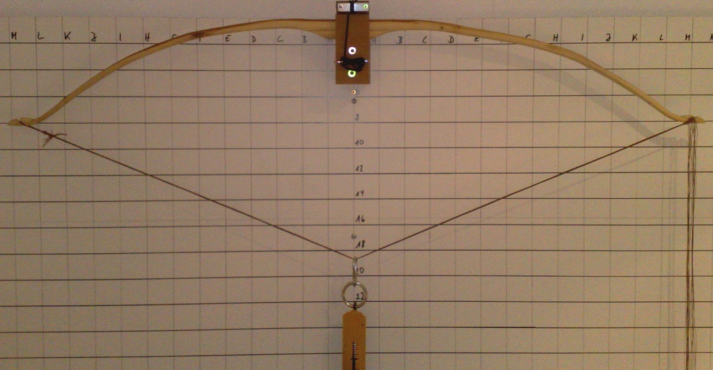 Hallo Allerseits, nochmal ein frisches Foto an der Tillerwand und jetzt wäre ich wieder dankbar für Kommentare - ich hab da nämlich mit dem rechten Wurfarm so ein Verständnisproblem. Da auf der Seite 2 Knicke (ich würde das sogar als kurze deflexe Stellen bezeichnen) im Holz sind, kann ich nicht beurteilen, ob es tatsächlich so ist wie es scheint (sieht so aus, als wäre der Arm nach den Knicken sehr steif) oder ne Täuschung durch die Knicke ist. Wenn ich ne Ellipse drüber lege, siehts nämlich ganz gut aus.