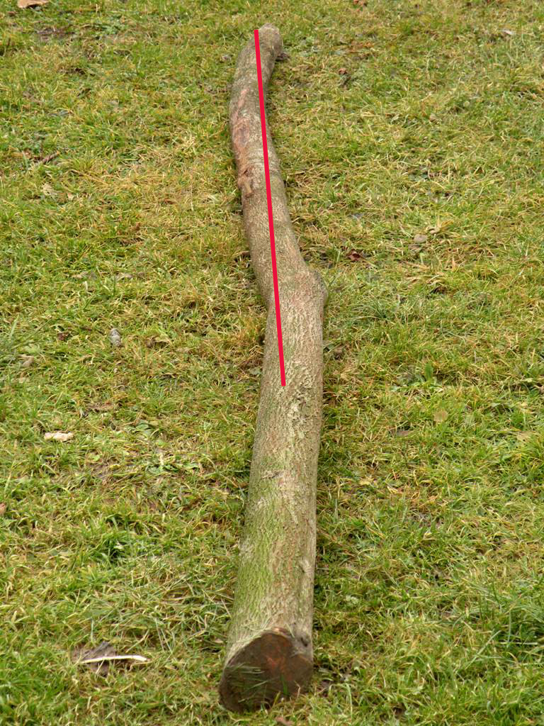 Von jedem Ende bis zum "Knie" sind es etwa 125 cm. Vom Knie bis zum Ast im oberern Teil sinds 45, zur Verwachsung 55.