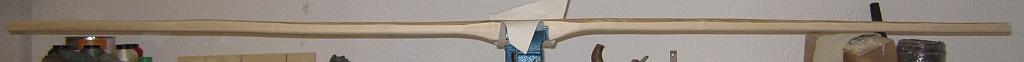 Der Tiller sieht dann auch etwas anders aus, wir wollen dort wo der Wurfarm am breitesten ist auch die meiste Biegung haben,- zu den Enden hin wird sie geringer.