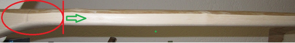 Zweite Frage: Das Ding biegt sich derzeit fast noch gar nicht, vielleicht ein paar cm, wenn ich mich mit vollem Gewicht in den Bodentiller stemme. Es ist geiles Holz mit schönen Ringen, so ca. 2 mm pro Ring. Soll ich mich ab jetzt ganz langsam und sachte vorantasten und immer so 1 mm am Bauch wegnehmen? Oder kann ich gleich noch einen halben cm wegmachen (an den Tips evtl. etwas weniger, weil sehr schmal)? Zielzuggewicht mind. 50# bei 28", wenn möglich 10-20# mehr.