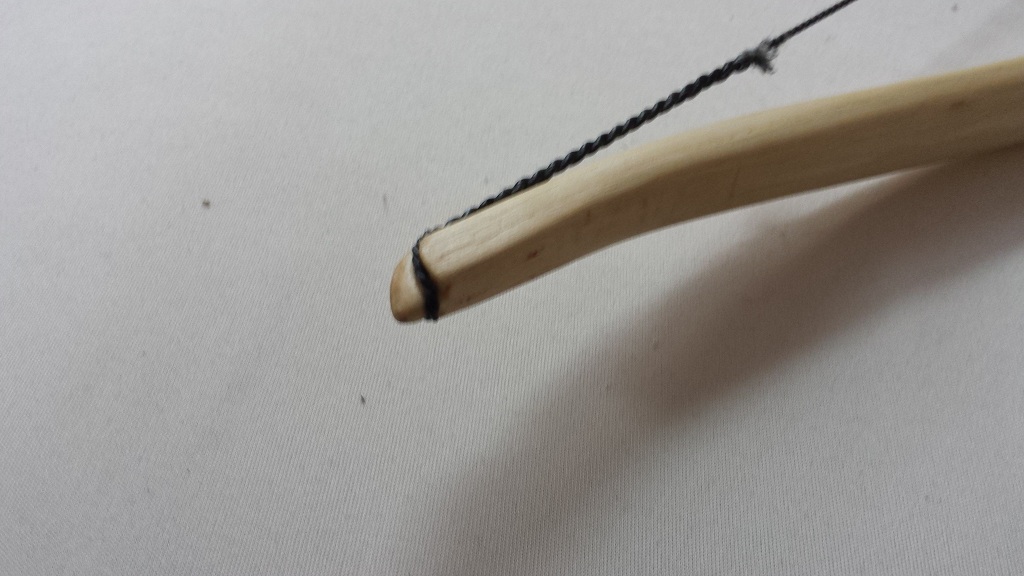 Abgespannt ist der Bogen ziemlich gerade: An den Tips hab ich den Holler nicht gebeizt: