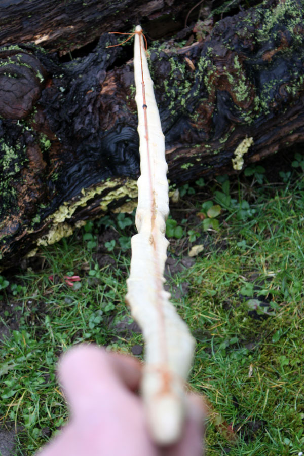 Bauch und Sehnenverlauf Rücken mit Bastresten hier die namensgebenden Frasspuren im Holz zu den Tips hin den Bast entfernt... und wieder die altbewährten Wickelnocks aus Hanf und ein paar Tröpfchen Sekundenkleber - schnell gemacht, leicht und stabil