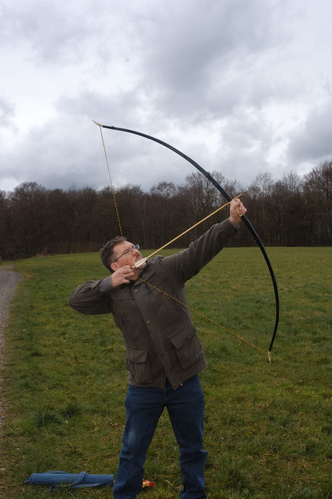 Trotz alledem bin ich einigermaßen zufrieden mit dem Resultat, die Pfeile fliegen nach vorn und außerdem liebe ich das Holz und seine Bearbeitung. Die Schwachstelle unten hätte noch etwas Aufmerksamkeit vertragen, ebenso wie die Enden in ihrer Biegung. But thats Saplingturnier...