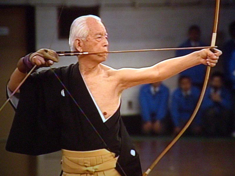 Was man hier auch sieht, ist dass im Kyudo mehr Abstand ist zwischen Zugpunkt und Nockpunkt.