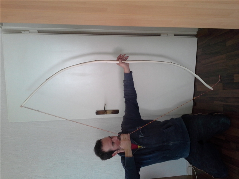 Es handelt sich um einen Bogen aus gelben Hartriegel der 185cm lang ist und etwa ELBartiges ergeben soll.