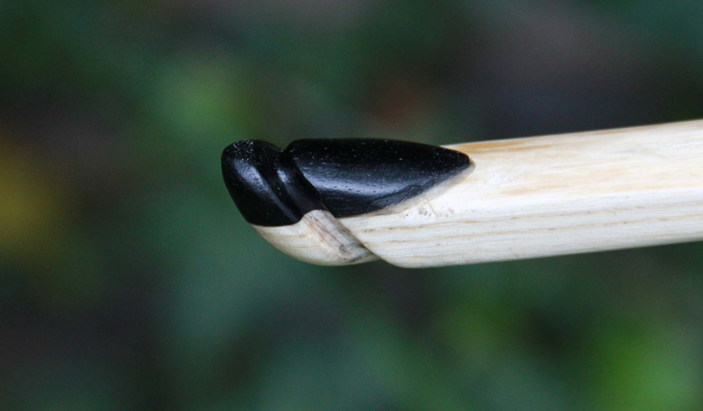 Da ist sie also, meine erste Präsentation - nicht wie versprochen die unter Skinwalkers Hilfe entstandene Ulme - dafür meine erste eigene Esche. "ebenEsche", da die Tip-Overlays aus poliertem Ebenholz bestehen. Die Griffwicklung ist ein einfaches Baumwollgarn und die Pfeilauflage ein Stück polierte Tagua-Nuss (auch bekannt als Steinnuss).
