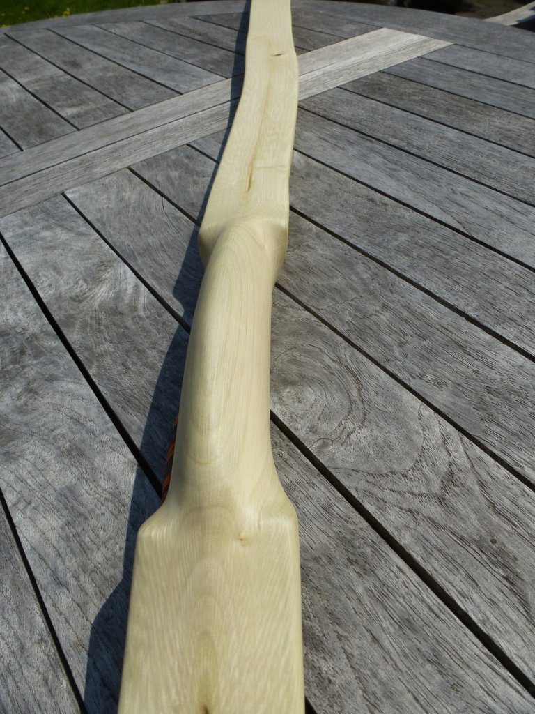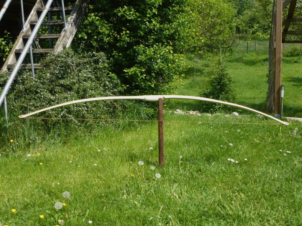 Die Tillerei war etwas knifflig wegen der Deflex/Reflex-Geschichte und auf Standhöhe ist der Bogen deshalb etwas asymmetrisch geworden. Der Bogen ist in sich etwas schief, aber die Sehne läuft über die Griffmitte.