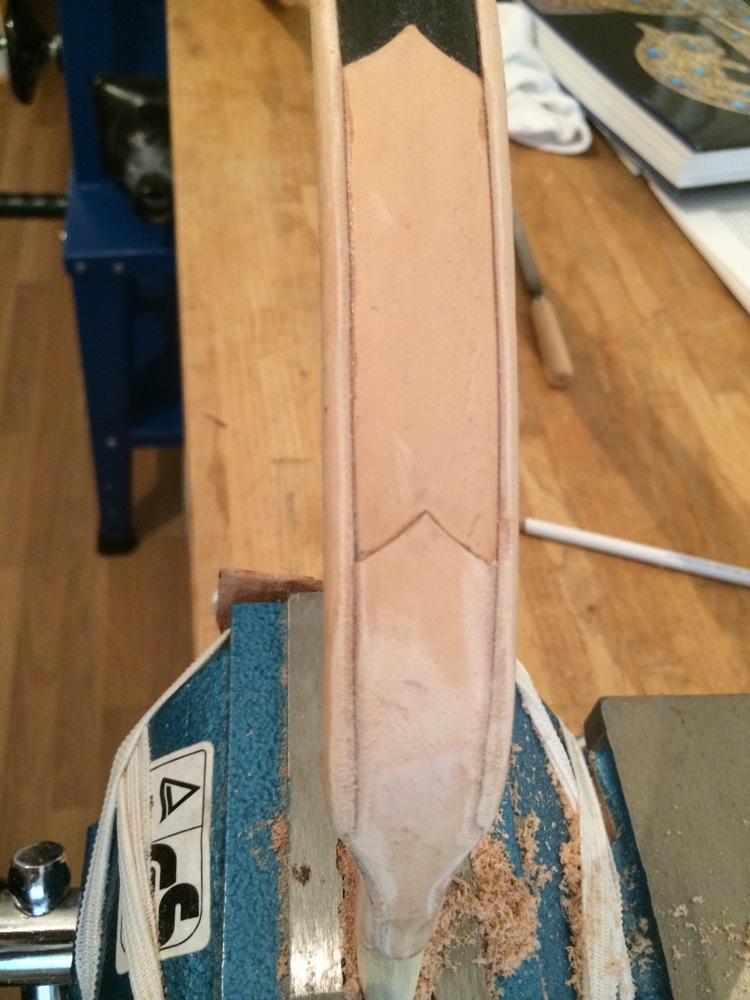 Der Arrowpass hat jetzt 23mm. Es werden mit Leder wohl 25mm werden. Guter Vorsatz für nächsten Bogen: diese Stelle noch enger machen.