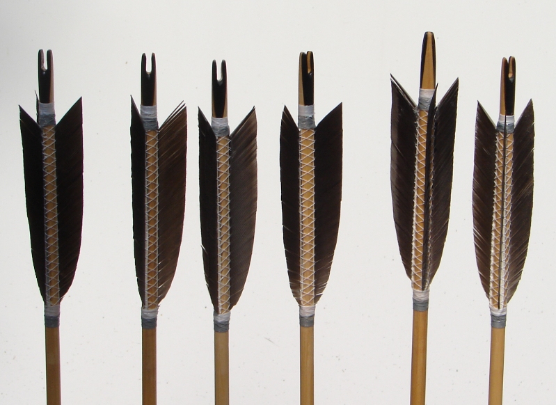Historische Pfeile hatten wohl auch eine Wicklung durch die Federn... man sieht das heute auch noch in den Hamaya, die zu Neujahr in den Tempeln verkauft werden (http://www.arhoj.com/front/hamaya). Die haben immer mittig in der Befiederung ein Band, das, so habe ich mir sagen lassen, stammt daher, dass man in vergangenen Zeiten da auch eine Wicklung durch die Federn hatte...