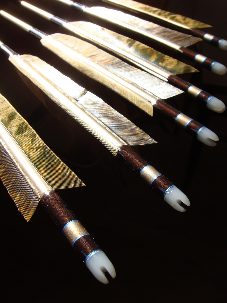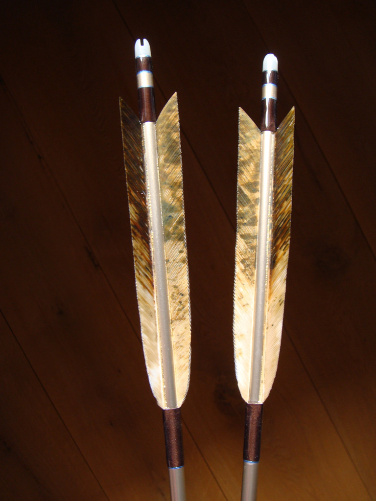 Diese Pfeile waren die Aufwändigsten die ich je gebaut habe und da dauerte jede Federwicklung 1,5 Stunden, das tut man sich nicht für Turnierpfeile an. ;)