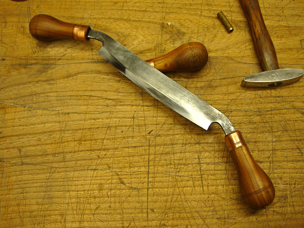 Griffe sind Rüster, mit Kupferzwingen und Beilagscheibe eingebrannt und vernietet.