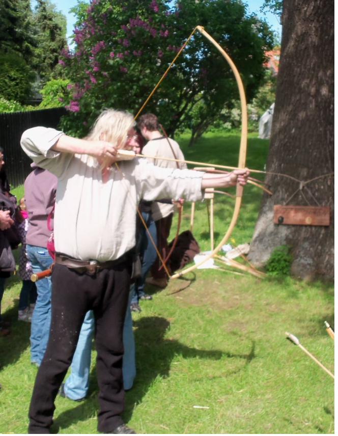 Mein Messer war mal eine Raspel. Das habe ich speziell als Bogenmesser geschmiedet und musste drei wichtige Bedingungen erfüllen. Pfeilspitzen aus einem Baum puhlen, Brot und Wurst schneiden und dem damaligen Waffengesetz entsprechen.