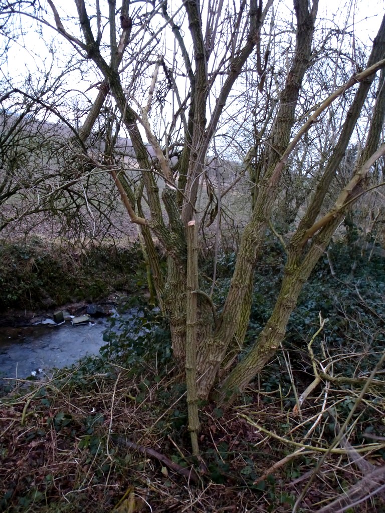 Ich bin heute morgen in der Dämmerung los und hab den schon vorher ausgesuchten Holunder am Bach geholt. Knapp 2m lang, fast durchgehend 9cm Durchmesser und ab 1,8m geht's mit knapp 6cm weiter.