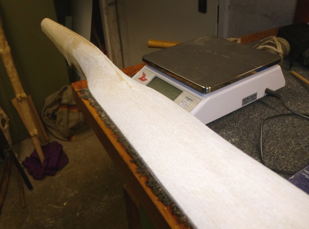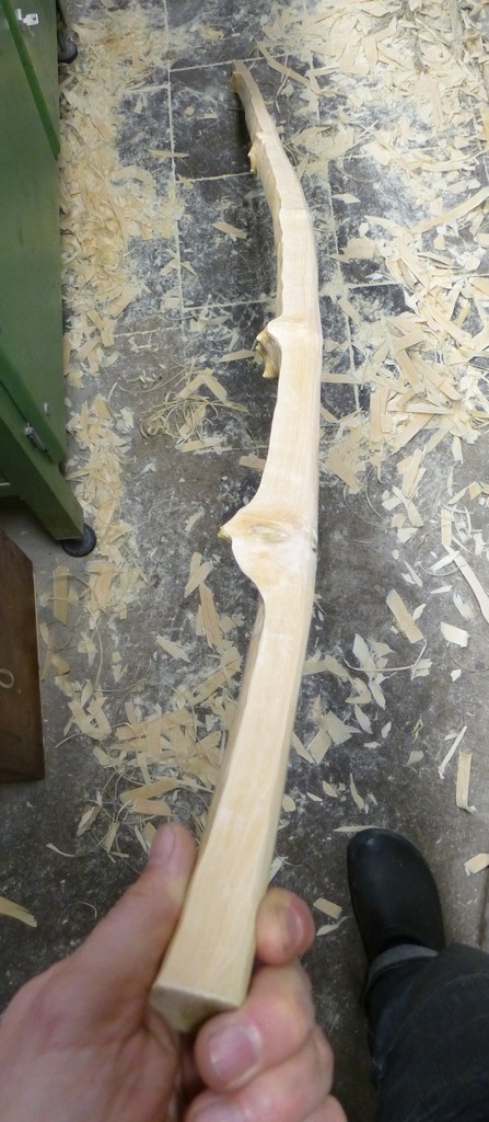Mit dem Ziehmesser besäumt und beschlossen mit dem langen Teil einen ELB (194cm) zu versuchen. Die andere Hälfte (172cm) soll ein Möllegabet werden. Die zweite Hälfte kommt dann die Tage.