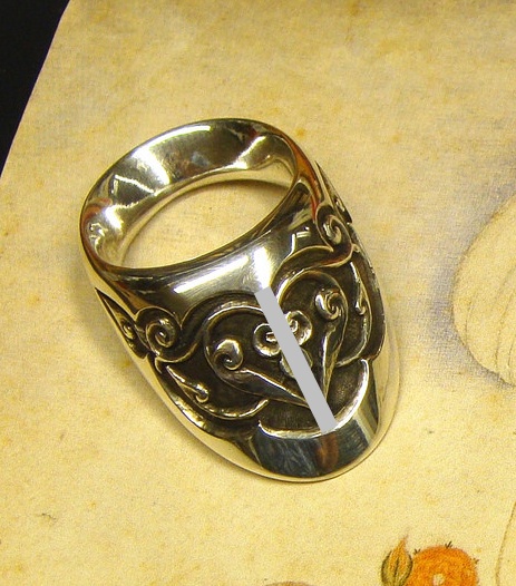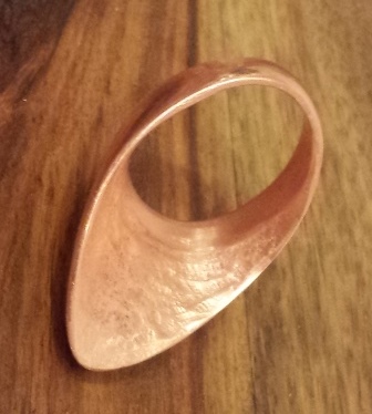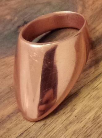 Dieser Daumenring ist ein Guss in Bronze von einer beim Daumenringworkshop erstellten Vorlage. Ich habe einiges an Material weggenommen und ihn an den Daumen des neuen Besitzers angepasst: