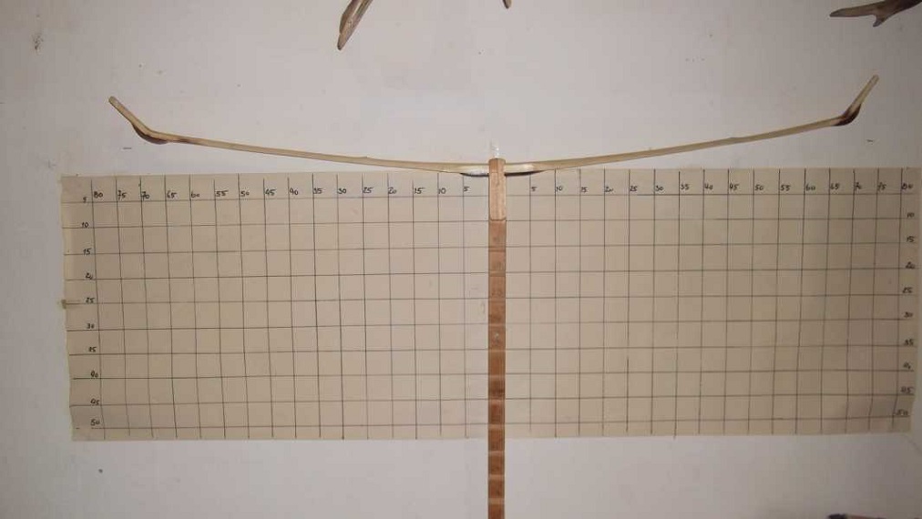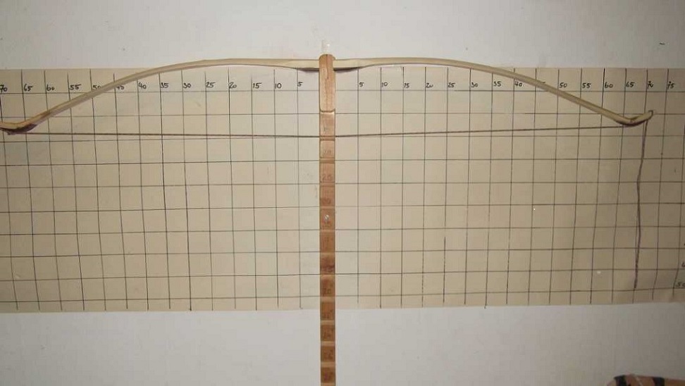 gestalterische Sache als eine Notwendigkeit. Mache da noch ne Längskerbe rein für die Sehne. Der Bogen fertig zum Tillern. Bin mal gespannt was von dem Reflex am Ende übrig bleibt.