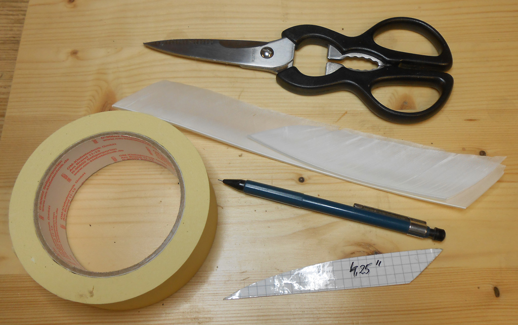 - Schablone Als Erstes zeichne ich die gewünschte Federform auf ein Blatt Papier oder Pappe und schneide sie sauber aus. Wenn die Form/Schablone häufiger genutzt werden soll, ist es ratsam sie mit Tesafilm zu bekleben.Anschließend werden die ganzen Federn grob auf die gewünschte Länge geschnitten.Um ein sauberes Ergebnis zu bekommen, sollte man eine kleine "Arbeitskante" nutzen. Die grob zugeschnittene Feder wird nun mit dem Kiel leicht gegen diese Arbeitskante gedrückt (damit sie gerade ist) und mit dem Malerkreb beklebt, danach wird die Rückseite der Feder ebenfalls mit Kreb beklebt.Nun wird die Schablone aufgelegt und mit dem Bleistift angezeichnet.Die angezeichnete Form wird dann mit der Schere sauber ausgeschnitten.Danach kann das Malerkreb (von der Federspitze aus nach hinten) abgezogen werden. Wurde sauber und gleichmäßig gearbeitet sieht das Ergebnis so aus: Ich hoffe damit dem Einen oder Anderen den "Pfeilbau" ein wenig zu erleichtern und natürlich hoffe ich auch das die Anleitung gefällt.