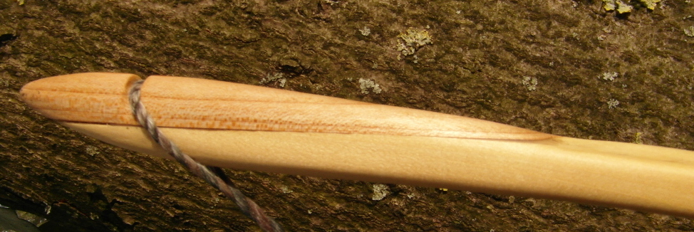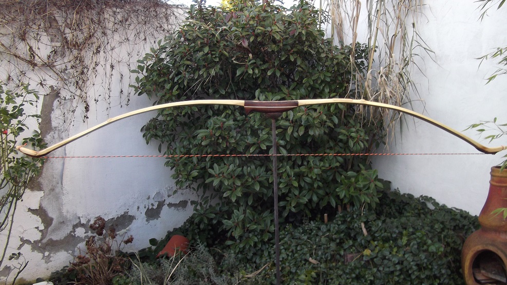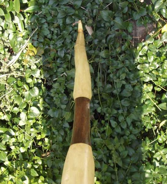 2. Länge N/N: 168 cm - Halbpyramide 38 mm auf 12 mm mit 10 mm auf 0 mm Trapping am Rücken aus 45 mm Sapling - 375 g (mit nassem Griffleder und Sehne)