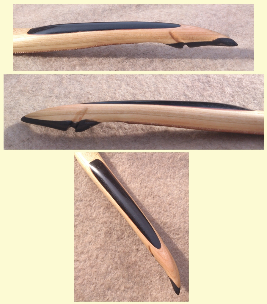 Der Bogen hat bisher etwa 150 Pfeile geworfen und ist nach dem Abspannen immer noch intakt. Etwas Set im unteren Wa an dessen reflexen Stellen etwas mehr und der Deflex oben ist ausgeprägter geworden.