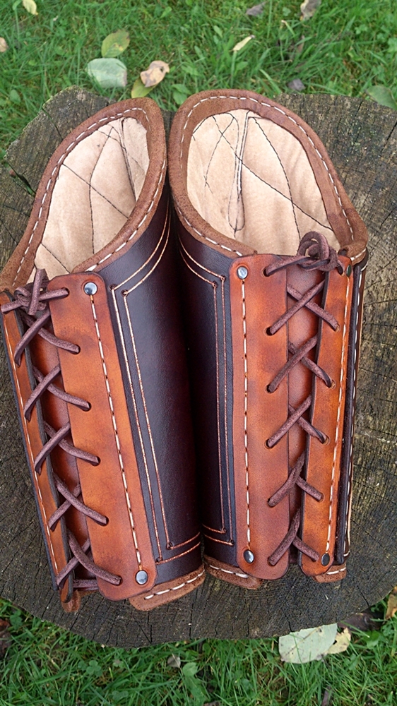 Kampfstulpe Arm Set Leder punziert Wikinger Frühmittelalter gepolstert Schaukampftauglich veritas lederarbeiten 100 % handarbeit 8.jpg